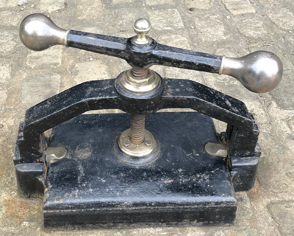 ![]() Antique cast iron and brass book paper printing press. Width 20", height 16.5"-20", depth. Very heavy, collection only. Used Price £295.00 |