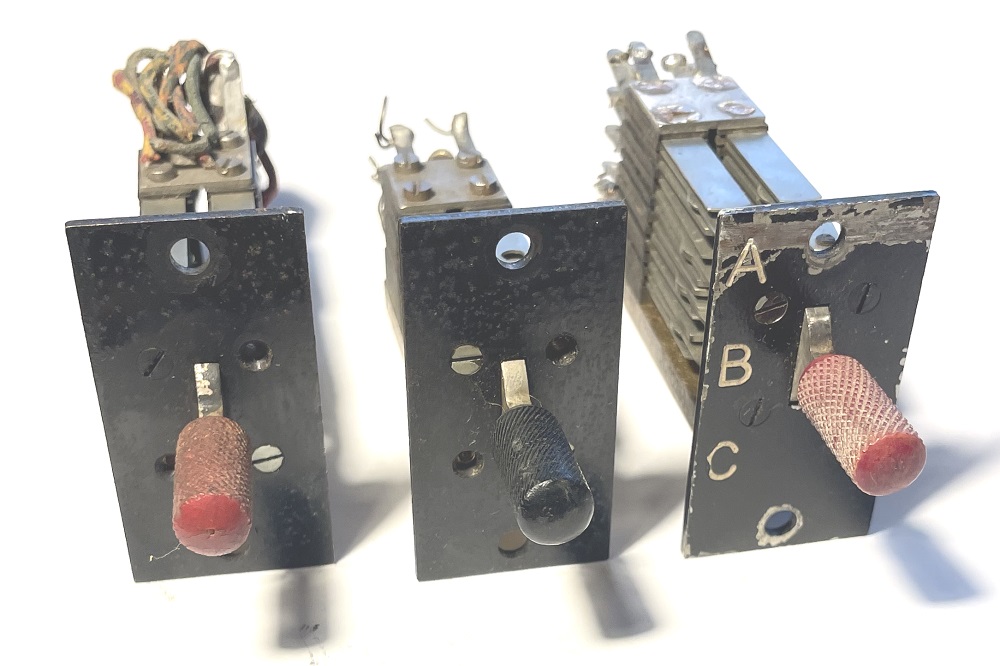 ![]() Three matching aircraft / radio switches, marked TE39/4 and 10A/10255. 2x two way, 1x 3 way. h(2 1/8") x w(1 1/28") x d(3 1/8") Second hand Price £75.00 |